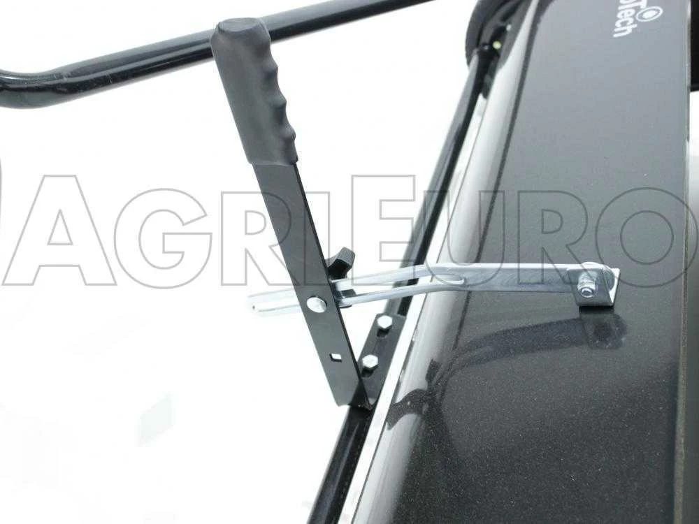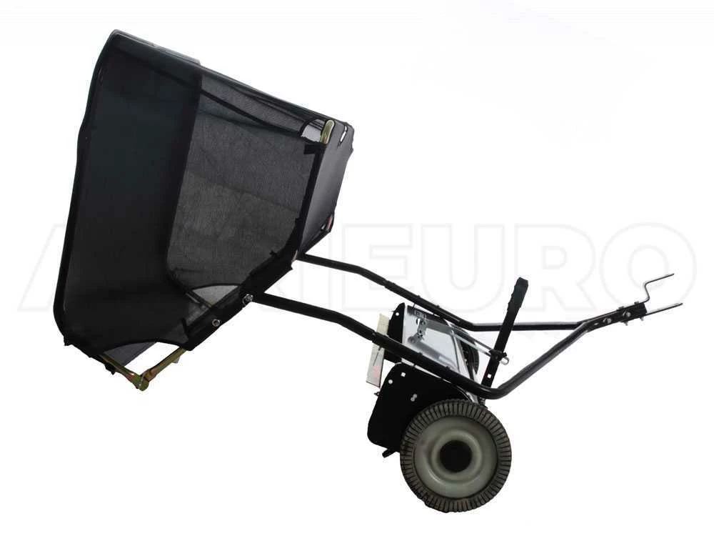 Détail du dispositif d’attelage à la tondeuse autoportée