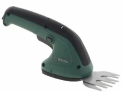 Cisaille Ă batterie Bosch EasyShear, un instrument extrĂȘmement compĂ©titif et de qualitĂ©, surtout pour son prix, utile pour couper et pour faire les finitions de la pelouse et des haies.