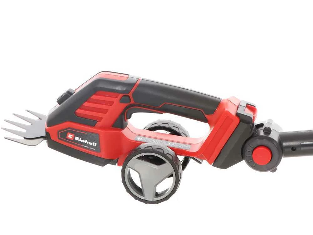 La cisaille Ă batterie Einhell GE-CG 18/100 Li est dotĂ©e de deux lames, une lame de 10 cm qui coupe lâherbe pour la finition du bord de la pelouse et une lame taille-haies de 23 cm pour lâentretien des haies de la maison, grĂące au systĂšme click-in, vous pourrez les changer facilement utiliser dâoutils supplĂ©mentaires.