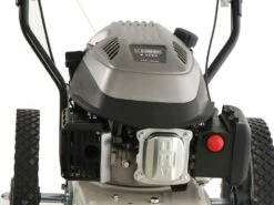 Progression par poussée. Les roues sont de grandes dimensions (34,5 cm de diamètre). La machine est facile à manier durant son fonctionnement.