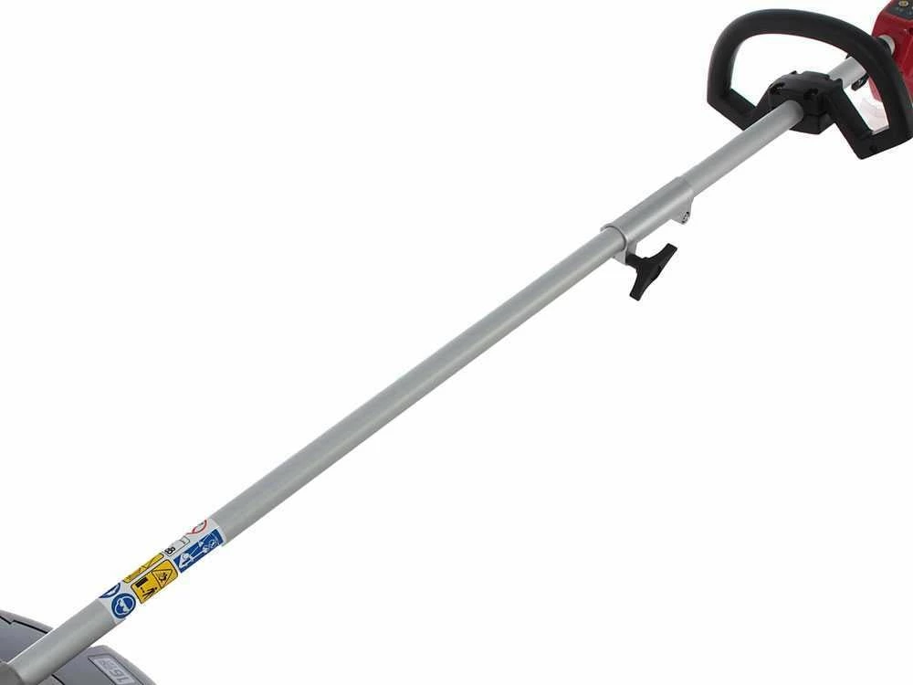 Produit équipé d’une débroussailleuse avec tête Tap& Go, accessoires taille-haies, perche élagueuse et rallonge de 65 cm pour les accessoires.