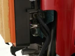 Détail du raccord rapide présent entre le flexible et l’arbre. Il permet de séparer les deux parties en un instant pour le charger en voiture, et le ranger au garage etc…