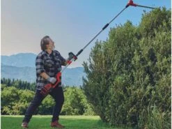 La perche de rallonge permet à l’élagueuse d’atteindre même les branches les plus hautes.