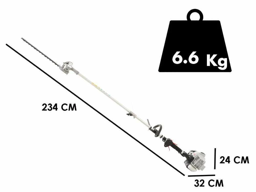Le taille-haies de 46 cm peut atteindre 2,5 m en hauteur de travail, usager compris.