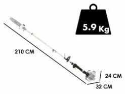 L’élagueuse fournie est réglable en longueur grâce à la perche de rallonge incluse, pour vous permettre de travailler avec la bonne position à toutes les hauteurs.