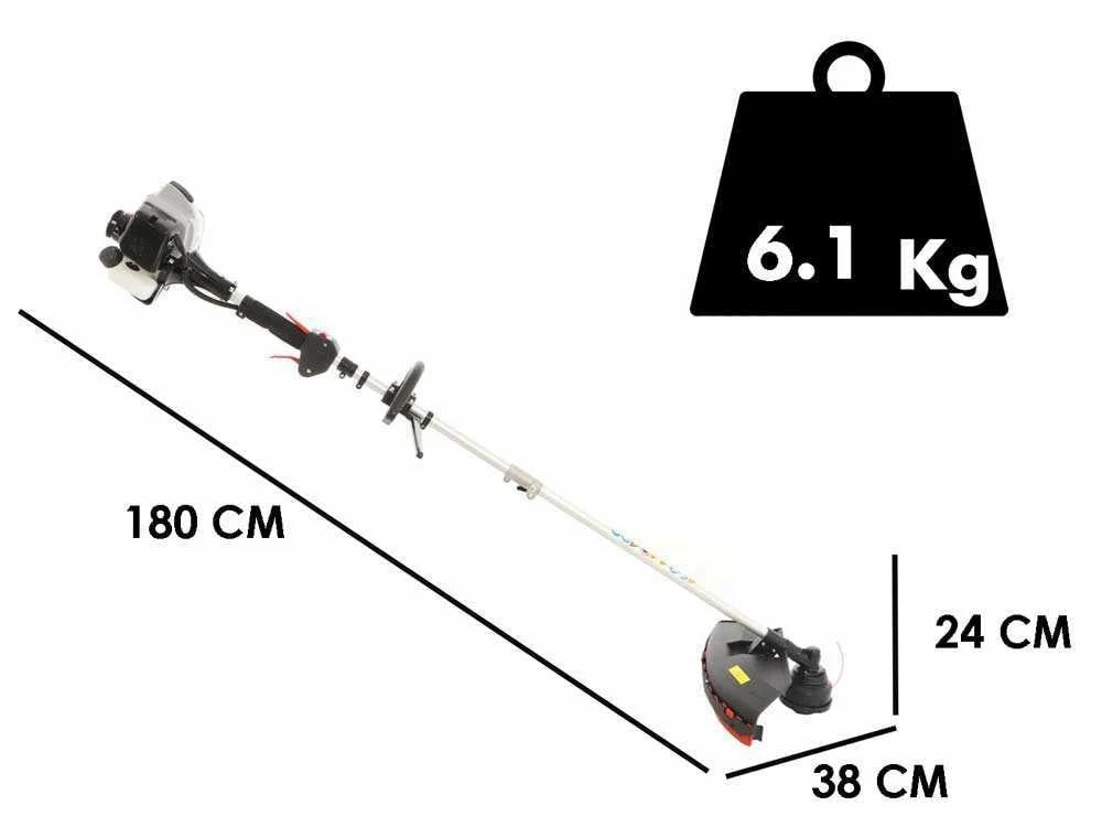 La débroussailleuse est expédiée MONTÉE et est prête à l’usage (il ne reste que 4 vis pour le pare-chocs et la poignée simple).