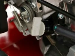 Autre grand avantage lié à la présence du renvoi avec transmission par courroie : le levier d’engagement et d’arrêt de la lame. Cette machine innovante permet d’activer la lame uniquement lorsque cela est nécessaire : cela permet d’effectuer des mouvements en traction, avec la lame à l’arrêt. Les roues sont également équipées d’un groupe de traction à engrenages à bain d’huile.