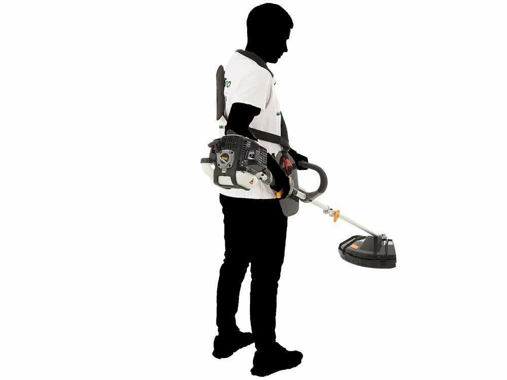 Support supplémentaire rotatif en plastique qui protège et réduit l’impact du poids de la débroussailleuse thermique que doit supporter l’opérateur.