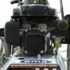 DĂ©tail du cĂŽtĂ© gauche du moteur oĂč se trouve lâaccĂšs au rĂ©servoir dâessence, la rĂ©gulation de lâair, le primer pour dĂ©marrage Ă froid, et l’allumage par lanceur du moteur.