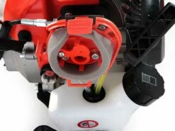 La débroussailleuse s’active très simplement grâce au système de démarrage manuel par tirage avec ressort de rembobinage, à la pompe d’amorçage d’activation à froid (starter) et au réglage de l’air.