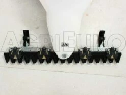 La barre de coupe est composée d’une lame inférieure et une autre supérieure qui effectuent un mouvement simultané à ciseaux. Ceci donne une caractéristique supplémentaire à la barre de coupe de cette motofaucheuse thermique Eurosystems par rapport aux faucheuses traditionnelles présentes sur le marché, qui fonctionnent encore avec un mouvement monolame (mouvement uniquement produit par la lame supérieure tandis que la lame inférieure reste fixe et agit comme une simple contrelame).