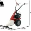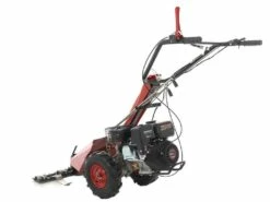 Il s’agit d’une motofaucheuse thermique autotractĂ©e Ă©quipĂ©e de roues sculptĂ©es de grandes dimensions.