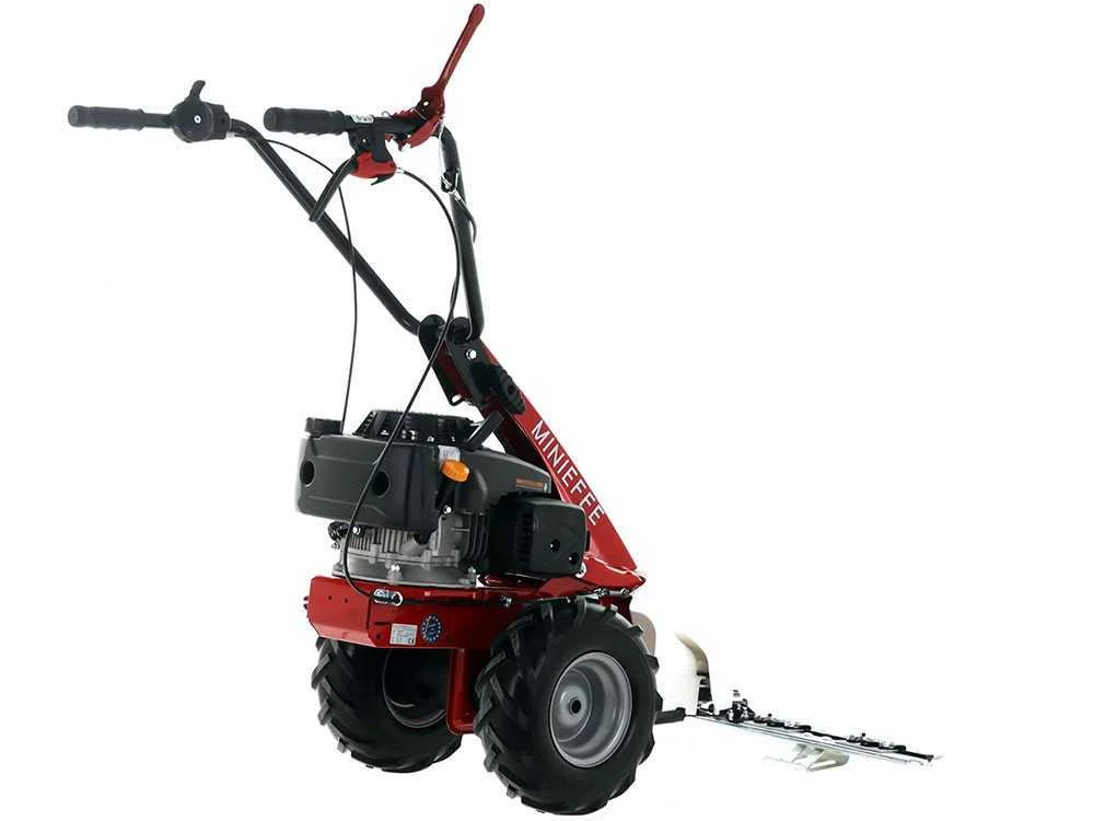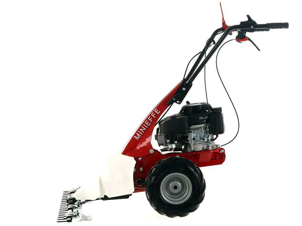 La Minieffe est une faucheuse Ă©quipĂ©e de moteur thermique Ă essence tractĂ©e Ă©quipĂ©e de roues pneumatiques agricoles, commandĂ©es par une transmission Ă vis sans fin par bain dâhuile. La barre de coupe 87 cm (comprise dans le prix) est de type mulching avec un mouvement standard monolame .