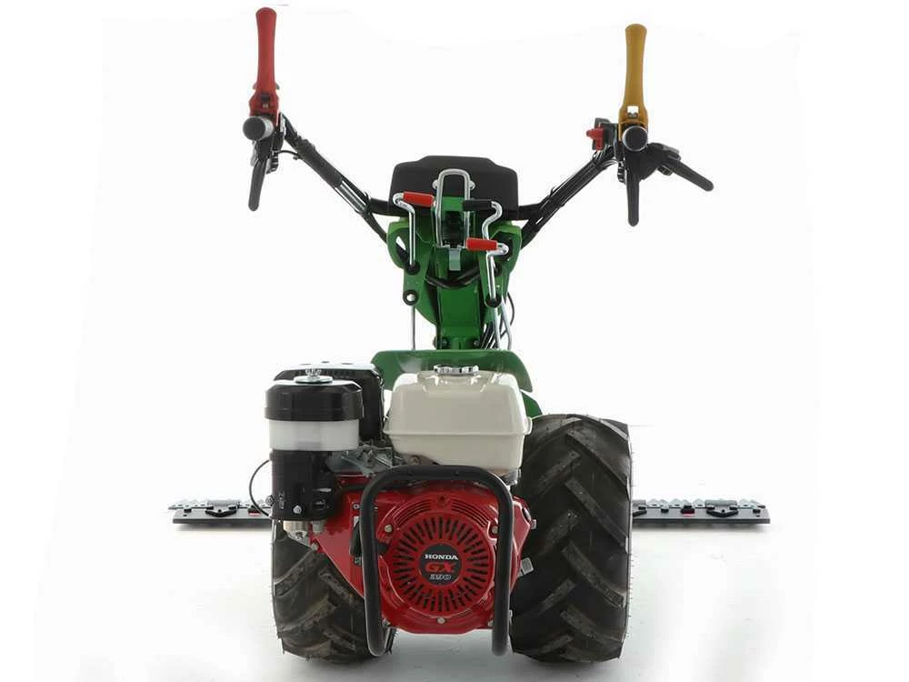 La barre de fauchage de 130 cm Ă bascule avec attache rapide (fournie de sĂ©rie dans le prix d’insertion) est reliĂ©e Ă la machine par une attache rapide, cela permet ainsi Ă l’opĂ©rateur de la retirer facilement et, grĂące Ă©galement aux mancherons rĂ©versibles, de connecter tout autre accessoire compatible, ce qui fait de la faucheuse un outil polyvalent et pratique pour des utilisations plus variĂ©es.