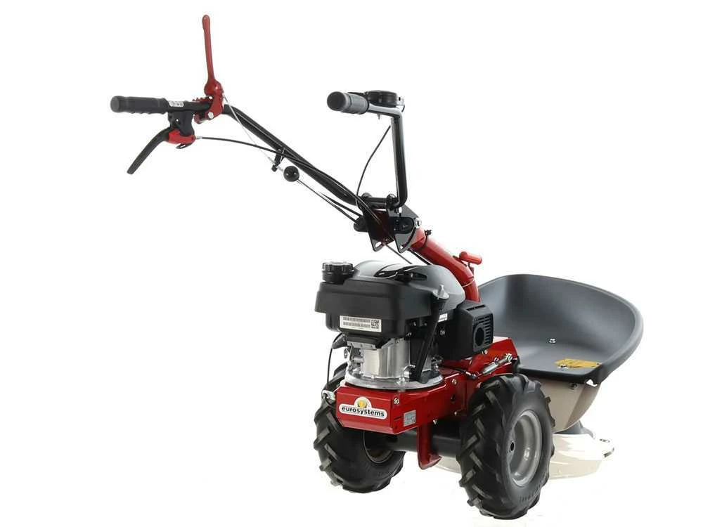L’Eurosystems P55 est une faucheuse rotative thermique autotractĂ©e avec roues pneumatiques agraires Ă profil Tractor activĂ© par une transmission Ă vis sans fin par bain d’huile et dotĂ© d’une vitesse avant + 1 arriĂšre.