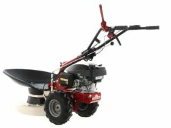 Brosse balayeuse avec bac: permet de transformer cette machine en une balayeuse autotractée trÚs efficace, pour le nettoyage, de cours, espaces verts en tous genres, routes, places.