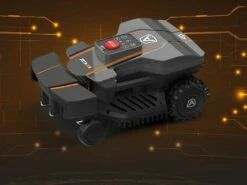 Le robot est équipé de roues caoutchoutées douces, de manière à ne pas endommager la pelouse.