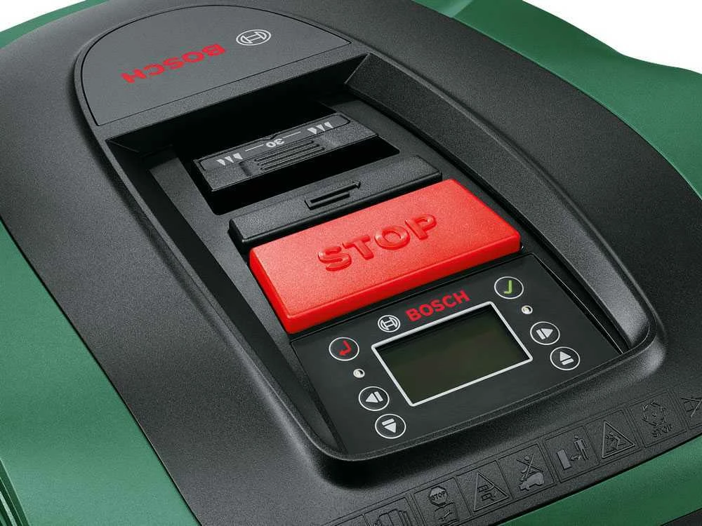 Enfin, la procĂ©dure de mise Ă jour logicielle peut ĂȘtre effectuĂ©e en tĂ©lĂ©chargeant le firmware Ă partir bosch-indego.com et le chargement Ă partir dâune clĂ© usb standard. Une fois cette opĂ©ration effectuĂ©e, il vous suffira dâinsĂ©rer la clĂ© sur la partie arriĂšre de la tondeuse et dâinstaller le logiciel.