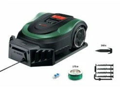 Vous trouverez dans lâemballage des fils et des piquets, qui permettent une installation du produit sans aucun type dâassistance. Une fois dĂ©limitĂ© le pĂ©rimĂštre de tonte, il vous suffira dâactiver le robot et câest fini.