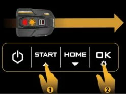 Une fois la base de chargement montée, et une fois que vous aurez fini de délimiter le périmètre de travail avec le câble prévu à cet effet et ses piquets, il vous suffira de démarrer le robot d’un simple geste.