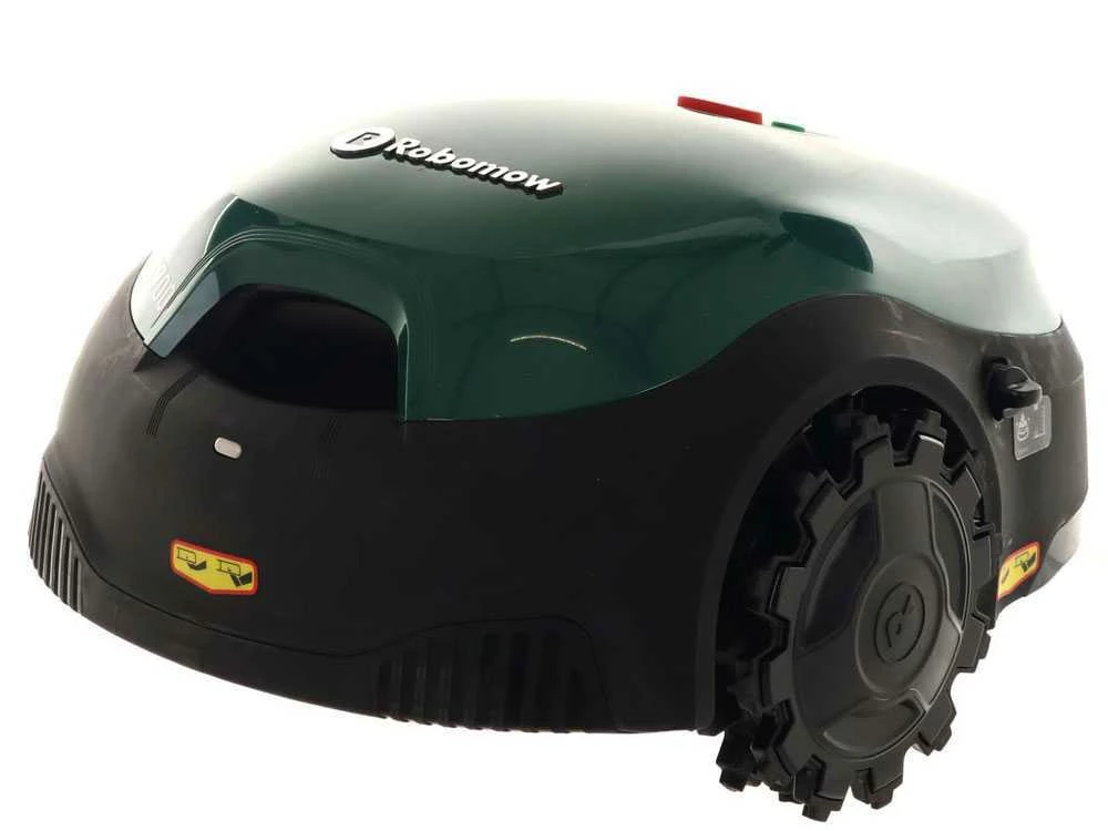 De plus la gamme Robomow RT est équipée de deux roues à traction élevée, avec design breveté qui permettent de ne pas faire déraper le robot même sur des pentes particulièrement compliquées.