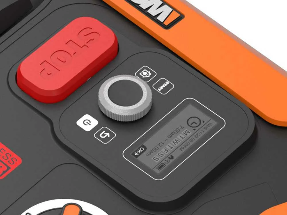 Landroid WR147E.1 Il est totalement automatique. Le robot est déjà pré-programmé pour obtenir le meilleur résultat. Il est cependant possible de modifier la programmation selon vos besoins par le biais du Wifi, Bluetooth et avec Alexa, grâce à l’App Worx Landroid, sinon vous pouvez utiliser le très pratique display simplifié.