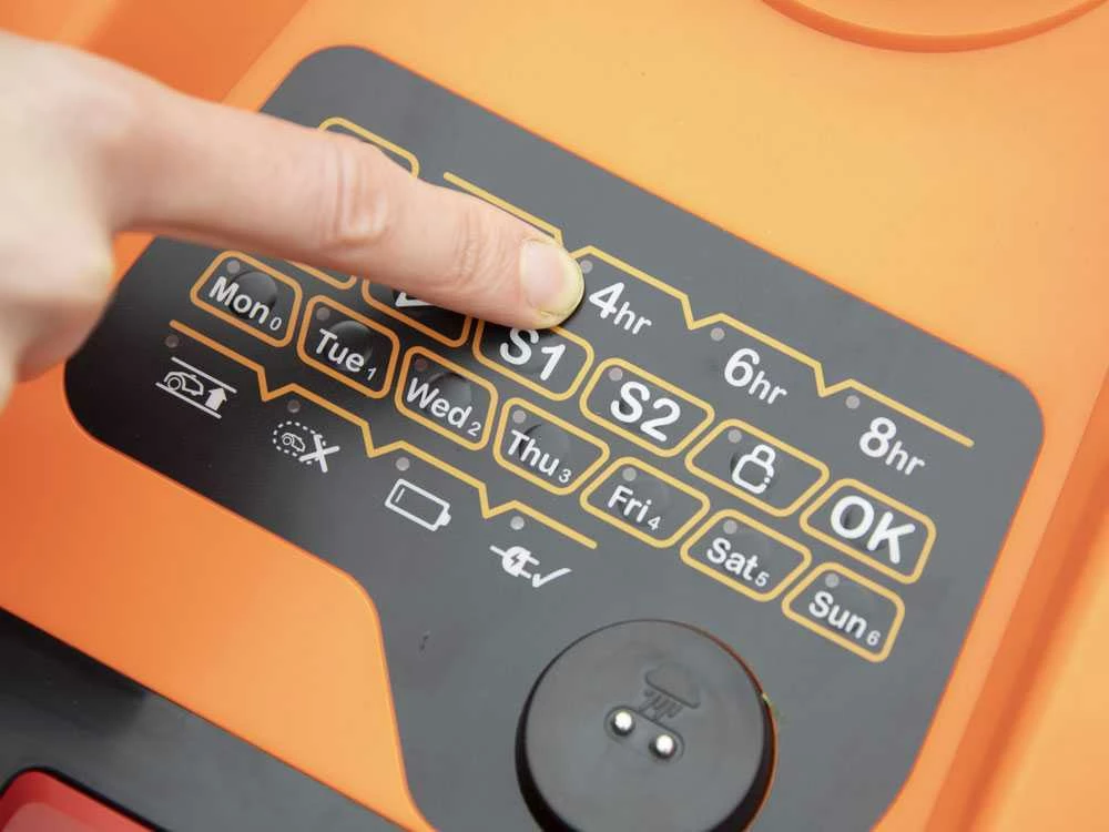 Si vous souhaitez effectuer une programmation manuelle, vous pouvez utiliser le panneau de commande pratique situé sur le dessus du robot Yard Force. Sur cette face du robot, en plus du panneau déjà cité, vous trouverez un bouton d’arrêt STOP, qui entrainera l’arrêt du robot et le mouvement des lames, ainsi que les capteurs de pluie. En cas de forte pluie, ces derniers feront retourner la machine à sa base de recharge.