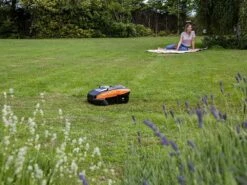 La tondeuse robot est conseillĂ©e pour une hauteur maximale de 55 mm. Avec de l’herbe plus haute, la tondeuse peut sâarrĂȘter. Nous vous suggĂ©rons de rĂ©duire la hauteur de l’herbe en dessous de 55 mm en utilisant une tondeuse standard ou de rĂ©gler la hauteur de coupe sur un niveau compatible.