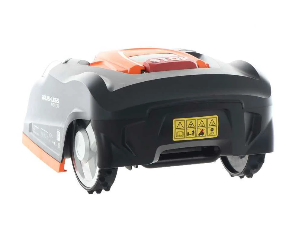 Le robot est Ă©quipĂ© de deux roues motrices Ă traction Ă©levĂ©e qui lui permettent une adhĂ©rence amĂ©liorĂ©e mĂȘme sur des pentes difficiles. Alors que les deux roues pivotantes Ă lâavant stabilisent la tondeuse robot.