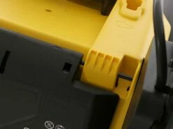 Au centre de la zone frontale se trouve l’emplacement de la batterie de 4 Ah.Il suffit de soulever la protection et dâenlever la batterie pour pouvoir la recharger.