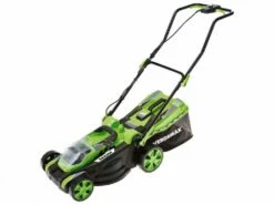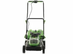La tondeuse a une largeur de coupe de 38 cm et une hauteur réglable de 20 à 70 millimètres.