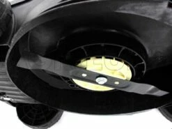 Au milieu de la zone frontale se trouve l’emplacement de la batterie Samsung de 2,5Ah, fourne avec la tondeuse.