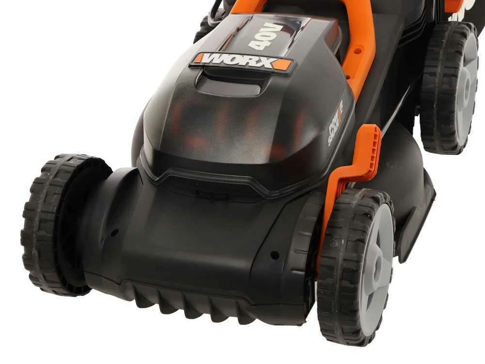 Le modèle WORX WG779E.1 atteint une largeur de coupe de 34 cm, pouvant emmagasiner dans le bac de ramassage jusqu’à 30 L. Une caractéristique qui le distingue des autres, est sa fonction INTELLICUT, qui permet d’améliorer les prestations en adaptant la puissance par rapport à la hauteur à la consistance de l’herbe. De plus, grâce à la partie inférieure du système de coupe, celui-ci est conditionné vers la lame.
