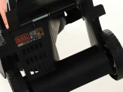 La tondeuse à gazon Black&Decker BEMW451BH-QS, est un moteur alimenté électriquement par 1200W, qui agit sur la lame réglable sur 3 hauteurs de coupe, allant de 23 à 63 mm, en manipulant directement une poignée au dessus de la roue arrière.