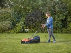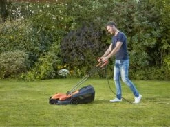 Idéale pour tondre le gazon sans l’encombrement et le poids du moteur thermique, avec une capacité du bac de ramassage de 35L, pour récupérer un maximum d’herbe et réduire le temps de vidage.