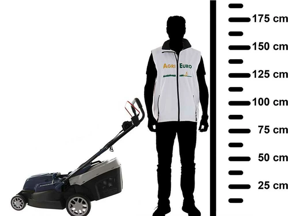 5 hauteurs de coupe différentes de 25 mm à 80 mm ajustables grâce au levier prévu, placé à côté de la roue arrière droite.