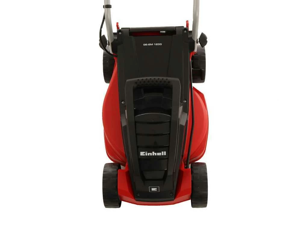 La tondeuse à gazon Einhell GC-EM 1233 est un appareil de tonte électrique manuel, doté de réglage centralisé de la hauteur de coupe, guidon ergonomique rabattable et réglable.