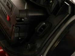 Il suffit de relever la protection et insérer la batterie pour mettre en route de la machine. Détail de l’emplacement de la batterie