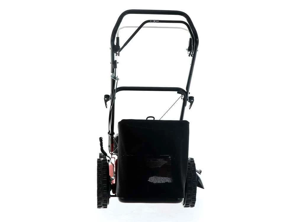 La tondeuse Ă gazon est Ă©quipĂ©e d’un bac en toile aluminium d’une capacitĂ© de 70 litres, trĂšs facile Ă retirer et Ă vider.