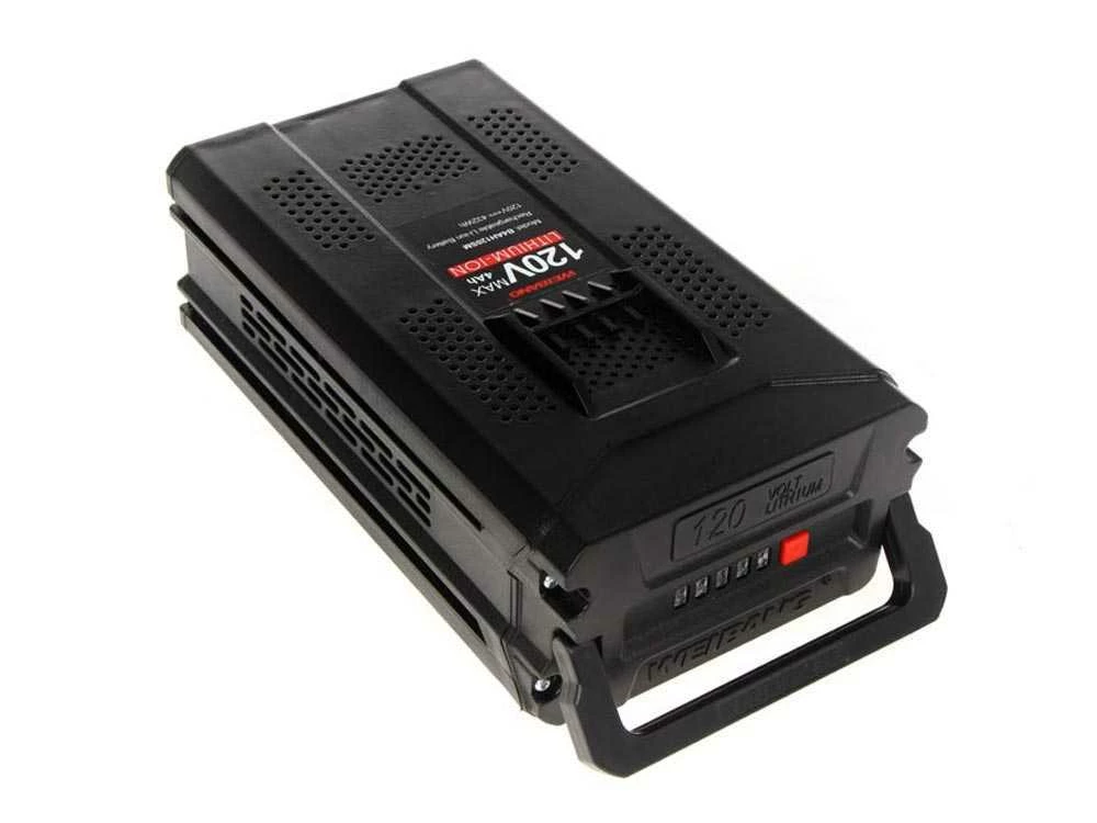 Au centre de la zone frontale vous trouverez l’emplacement de la batterie de 120V et 4.0 Ah.