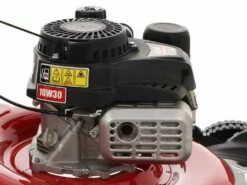 Cette tondeuse à gazon met à disposition 6 positions de réglages de la hauteur de coupe qui varient entre 28 mm minimum jusqu’à 92 mm maximum. Les hauteurs sont réglables avec la poignée qui agit sur les roues antérieures et postérieures de la tondeuse.