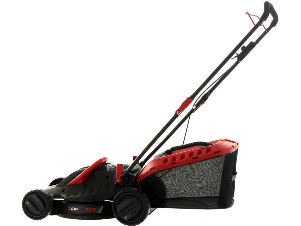 Tondeuse à gazon électrique RATO RBLM40 à poussée manuelle avec batterie aux ions de lithium et chargeur inclus.