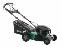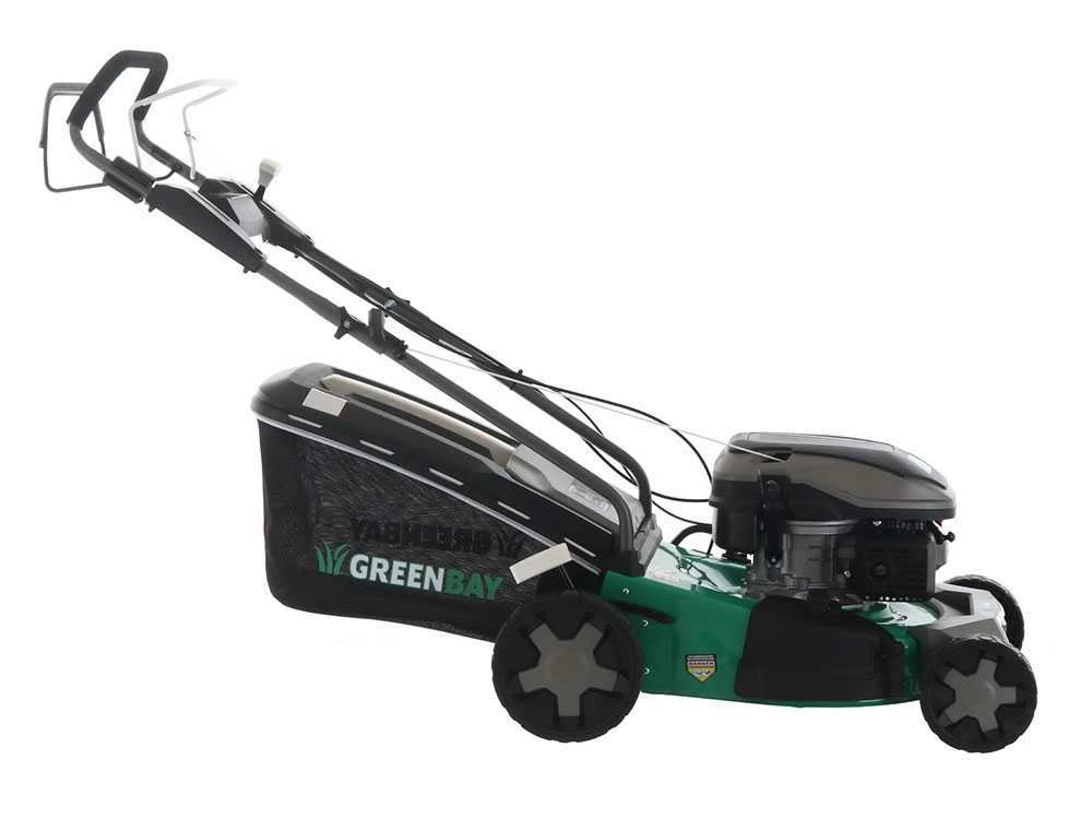 Tondeuse à gazon tractée GreenBay GB-LM 46 S à essence 4 en 1 conçue pour utiliser tous les systèmes de coupe: