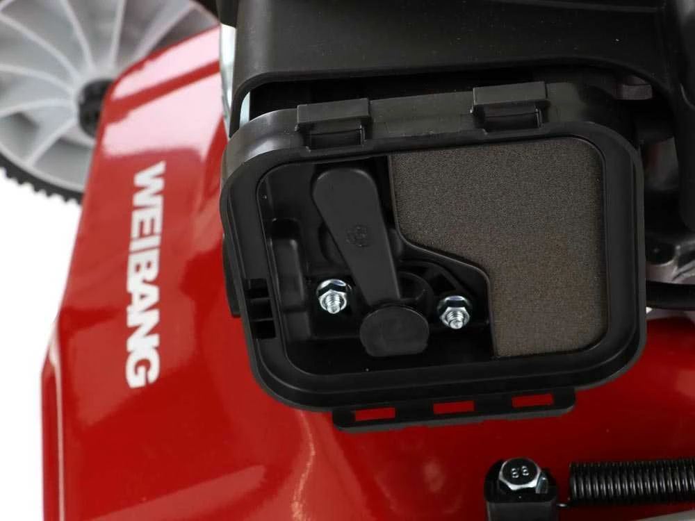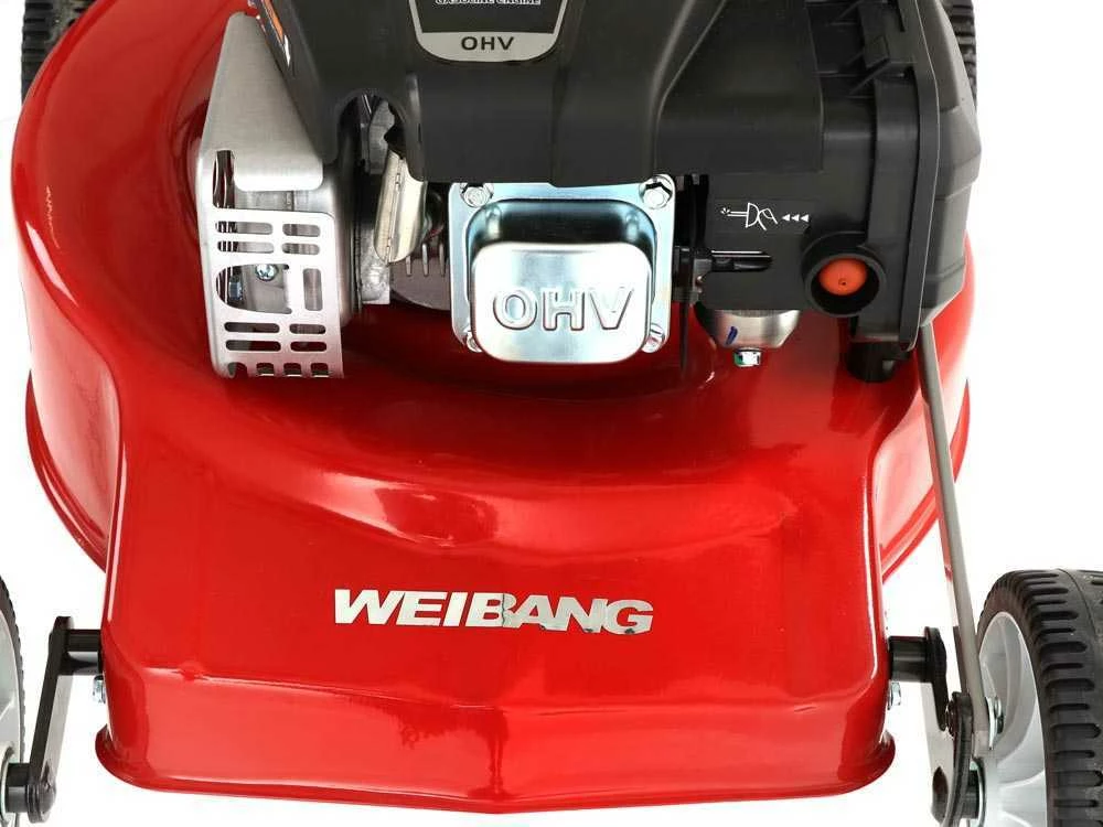 Tondeuse à gazon manuelle Weibang WB455HC d’une largeur de coupe de 45 cm, avec châssis en acier émaillé, robuste, résistante et légère à la fois.