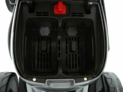 Au centre de la zone frontale se trouve l’emplacement de la batterie 48V de 4 Ah. Il suffit de soulever la protection et d’enlever la batterie pour pouvoir la recharger.