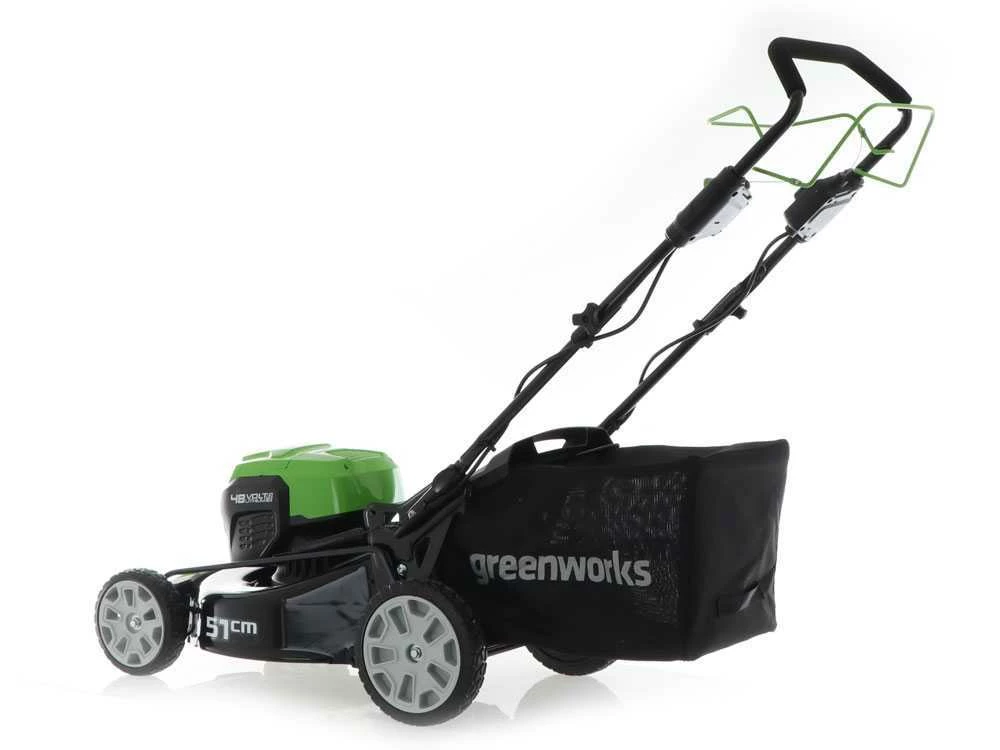 La tondeuse à gazon électrique à batterie Greenworks GD48LM51SP est une tondeuse tractée alimentée par batterie de 48V.
