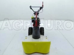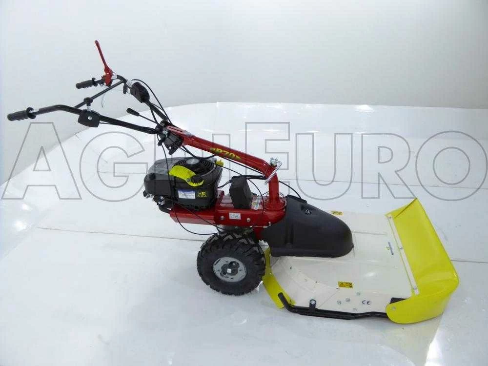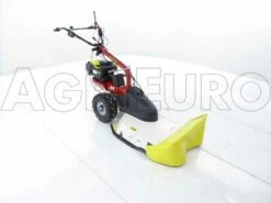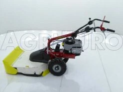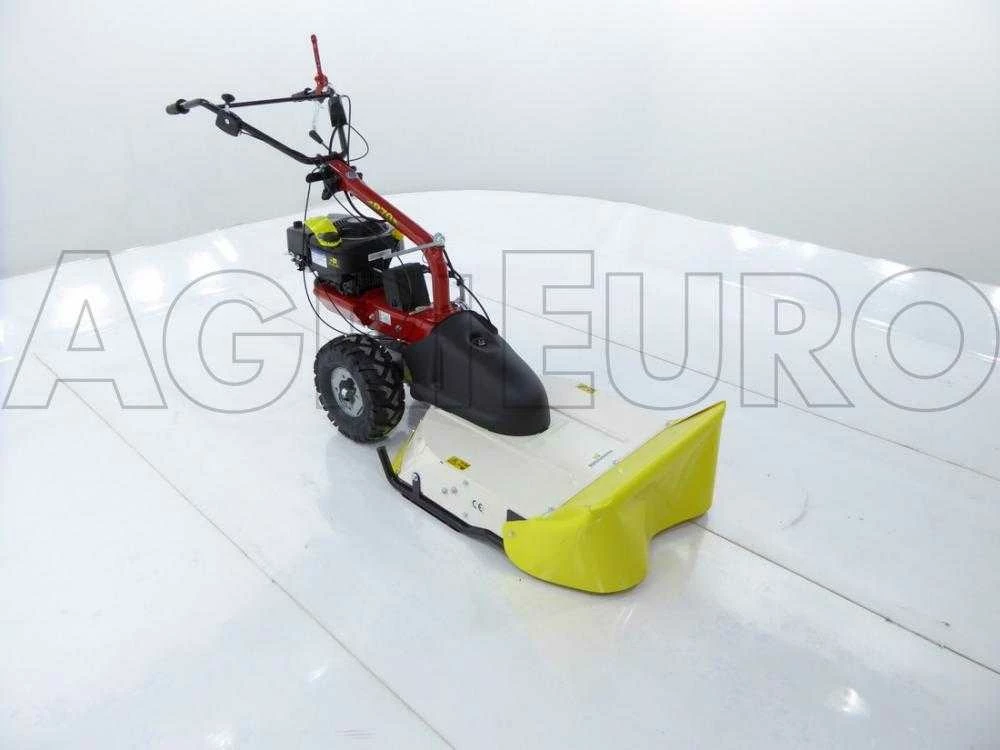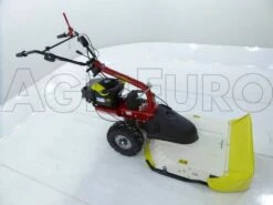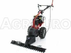 Il s’agit d’une tondeuse débroussailleuse innovante autotractée, équipée de grandes roues profilées tractées, reliées à une transmission à engrenages à bain d’huile et disposée avec une boîte à 5 vitesses (3 avant + 2 arrière).