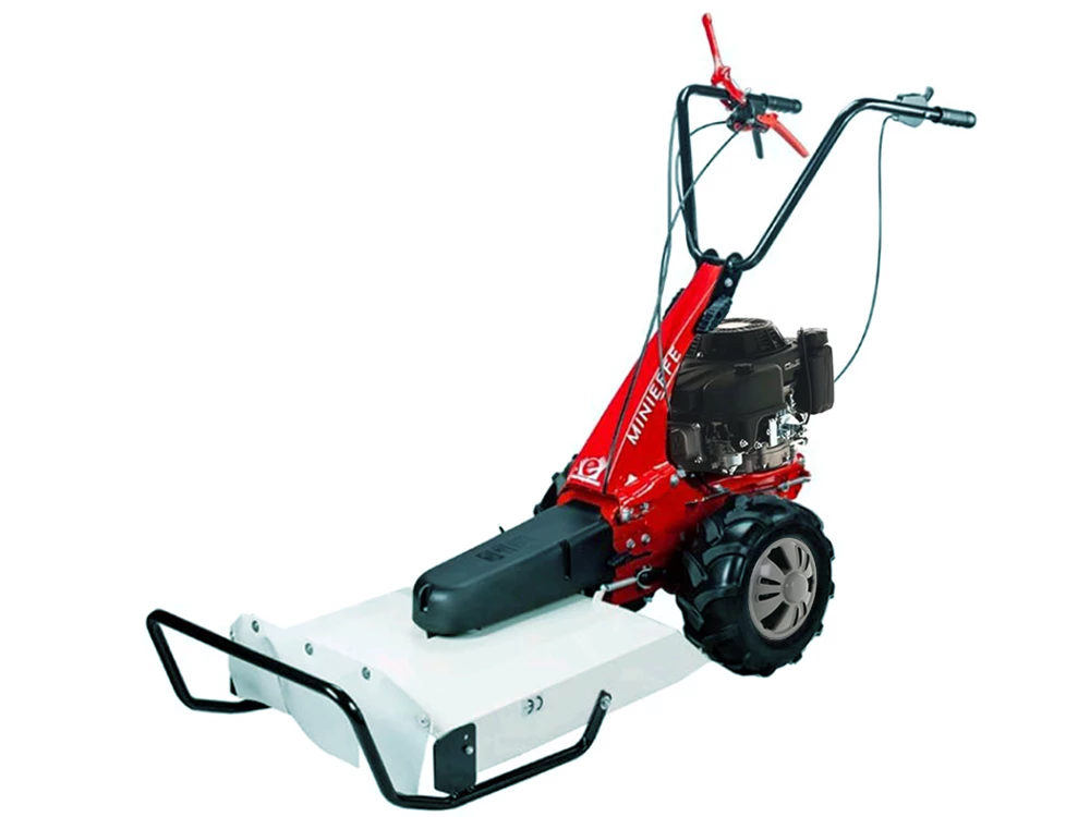 La tondeuse débroussailleuse thermique Eurosystems Minieffe RM est une machine à moteur thermique autotractée équipée de roues pneumatiques qui sont à transmission par vis sans fin à bain d’huile.