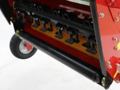 La hauteur de coupe est réglable par le biais des poignées prévues qui réhaussent et abaissent les roues par conséquence également le rouleau de coupe.