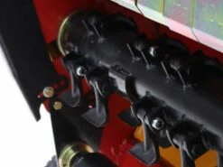 Premier plan des marteaux de coupe, montés sur rouleau tournant.